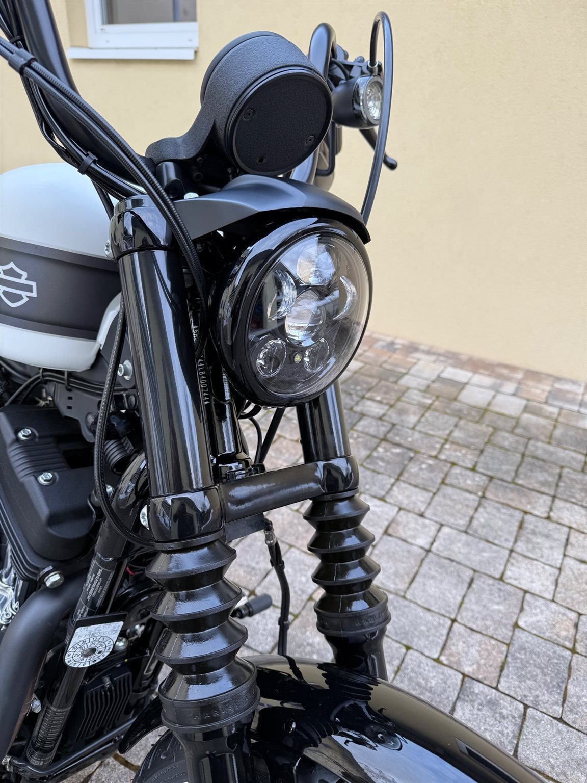 Im Winter 2024 erhielt das Bike eine Komplettlackierung von martinairbrushcomposing. Fender, Seitenteile, Riemenabdeckung und Struts wurden schwarz glänzend lackiert und der Tank erhielt ein weißmattes Design im Stil der 2023er Breakout.