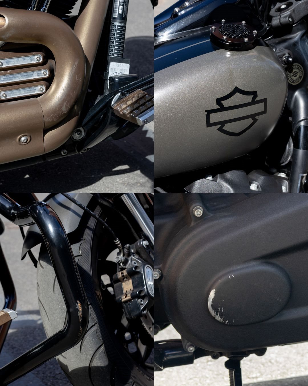 Kleine optische Mängel / Gebrauchsspuren die sich über die Nutzung ergeben haben sind in den Bildern gezeigt (kleine Delle im Tank rechts, Kratzer im Sturzbügel rechts, stellenweise Lack abgerieben durch das Schuhwerk beim Fahren).