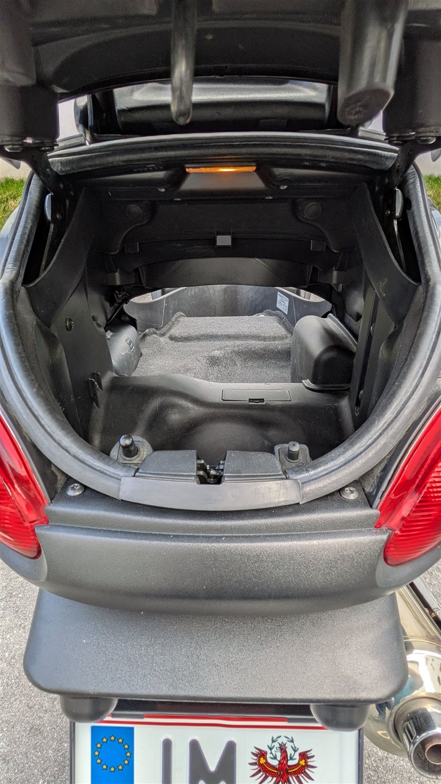 Großer Stauraum unter dem Sitz sowie ein zusätzlicher Kofferraum - genügend Platz für den Einkauf oder Sonstiges.