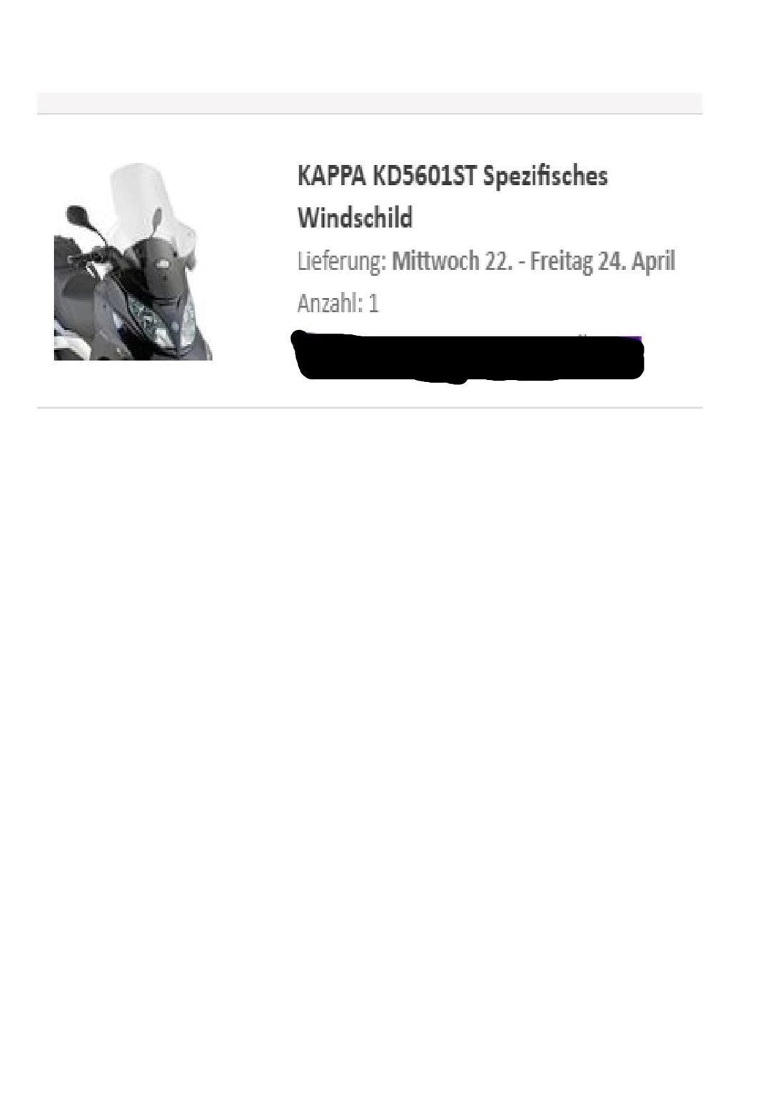Eine neue Tourenscheibe für noch besseren Wetterschutz wurde auch noch bestellt. Lieferung erfolgt am 24.04.2026 und wird anschließend montiert. (Rechnung beiliegend) Symbolfoto.