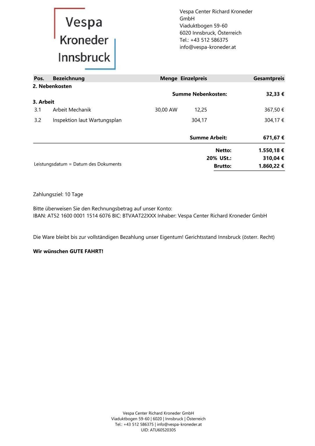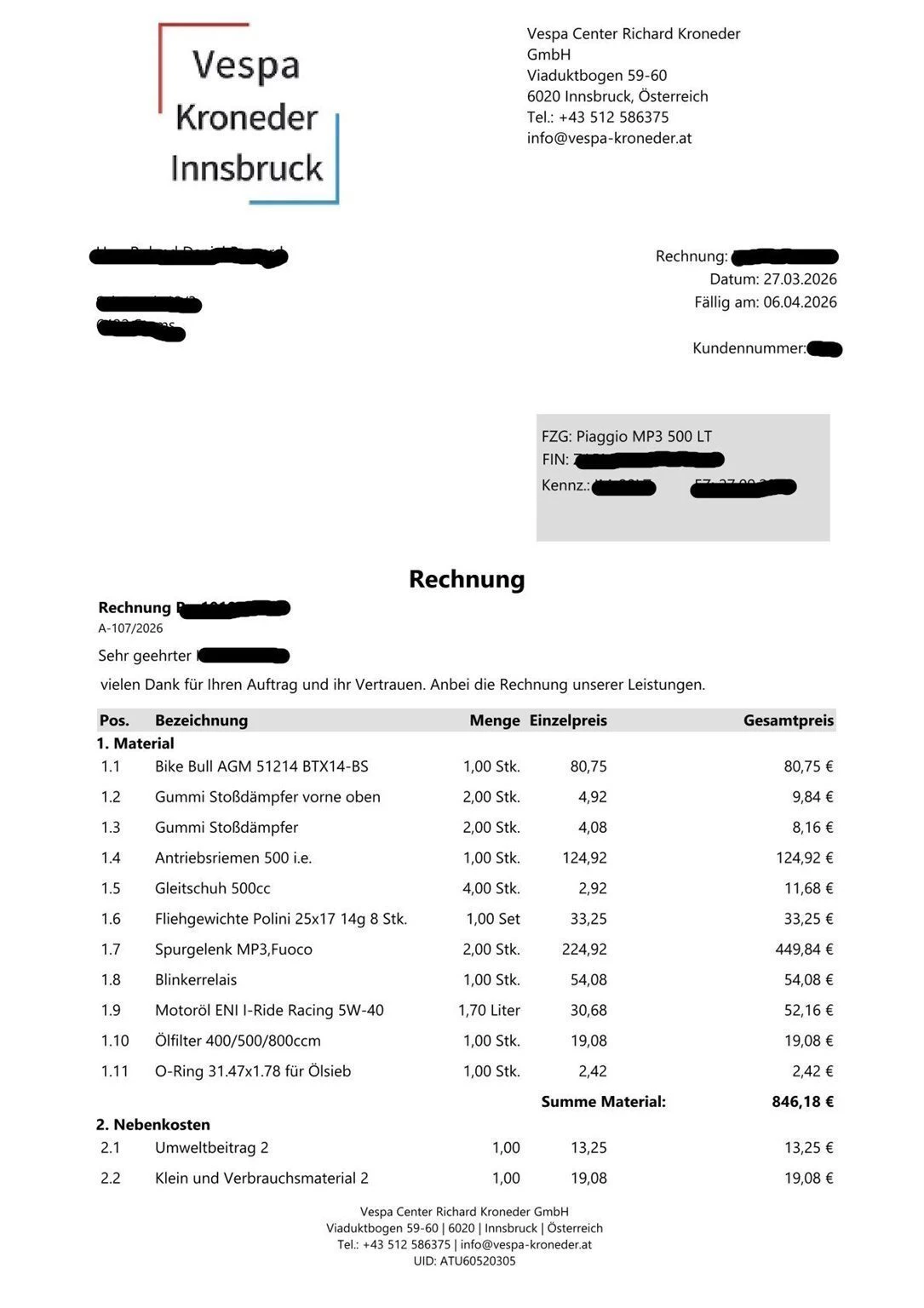 (siehe Foto Rechnung Vespa Kroneder)