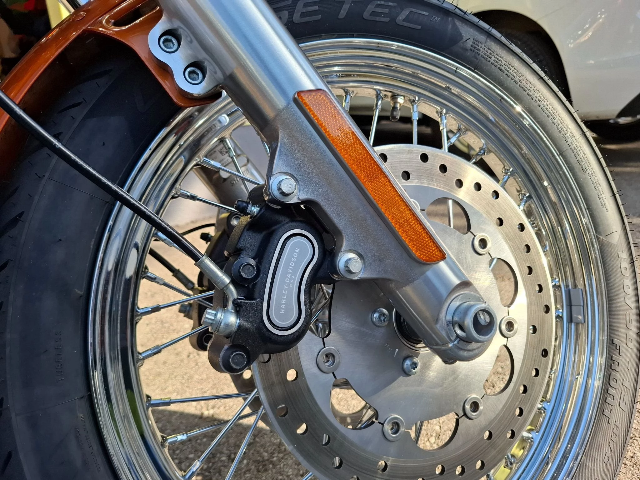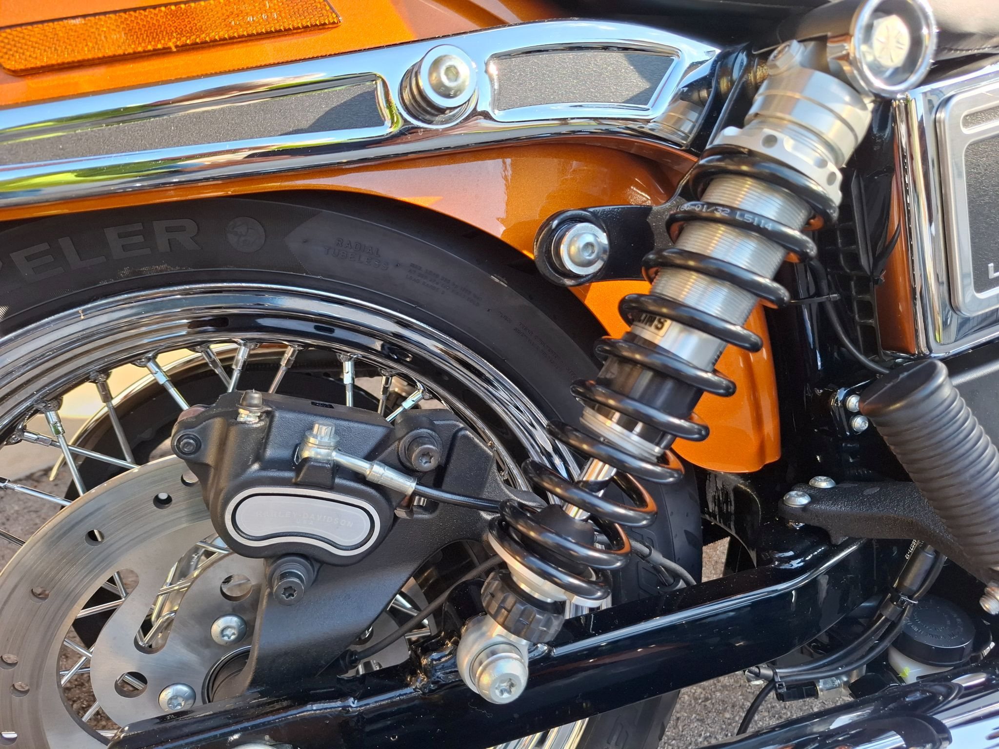 Supertuner und Screeming Eagle Luftfilter zur optimalen Abstimmung dadurch erheblich verbesserter Durchzug, Fußrasten vorverlegt, Speichenräder, Öhlins Federbeine und Gabelfeder, damit fährt sie richtig gut. Neu bereift.