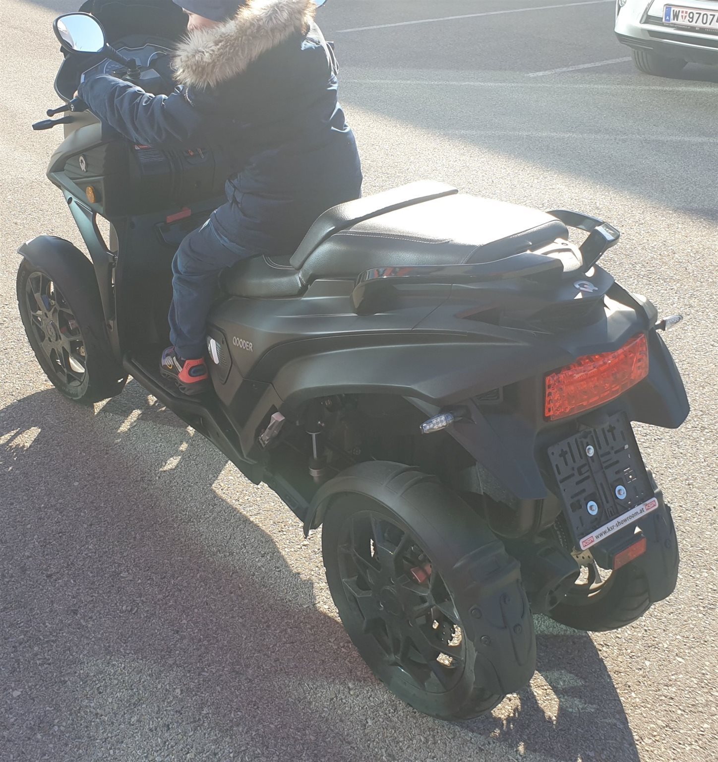Qooder QV zählt als dreidrädriger Fahrzeug klasse L5e-A (trotz 4 Räder)- und wird mit B-Schein gefahren. Neupreis vom Fahrzeug ist ca 11000 Franken.