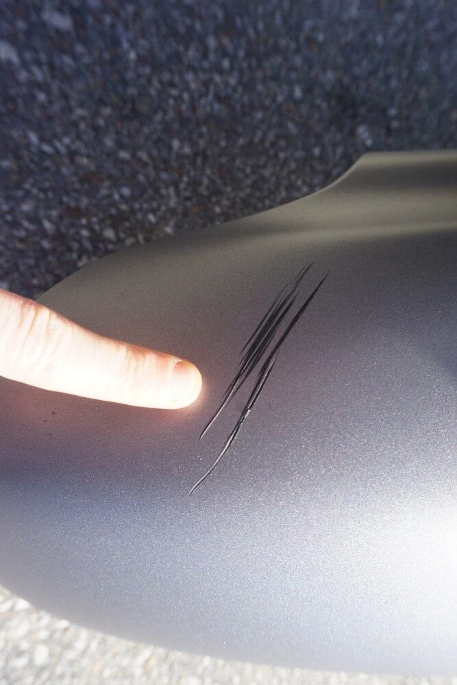 leichte Kratzer am Kotflügel vorne ( siehe Foto)