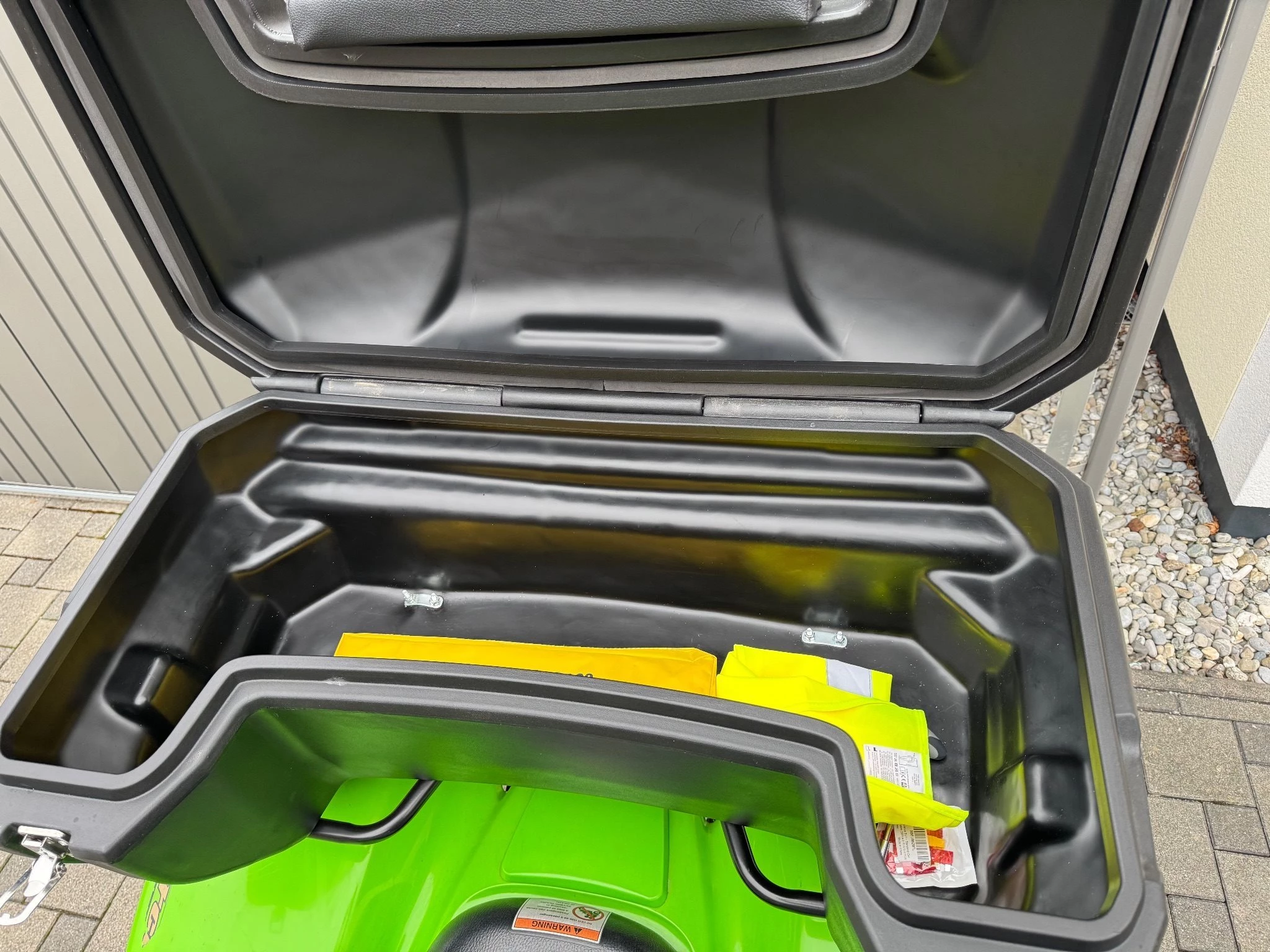 Zudem ist ein großer Koffer dabei wo 2 Helme und ein Reservekanister leicht Platz haben.