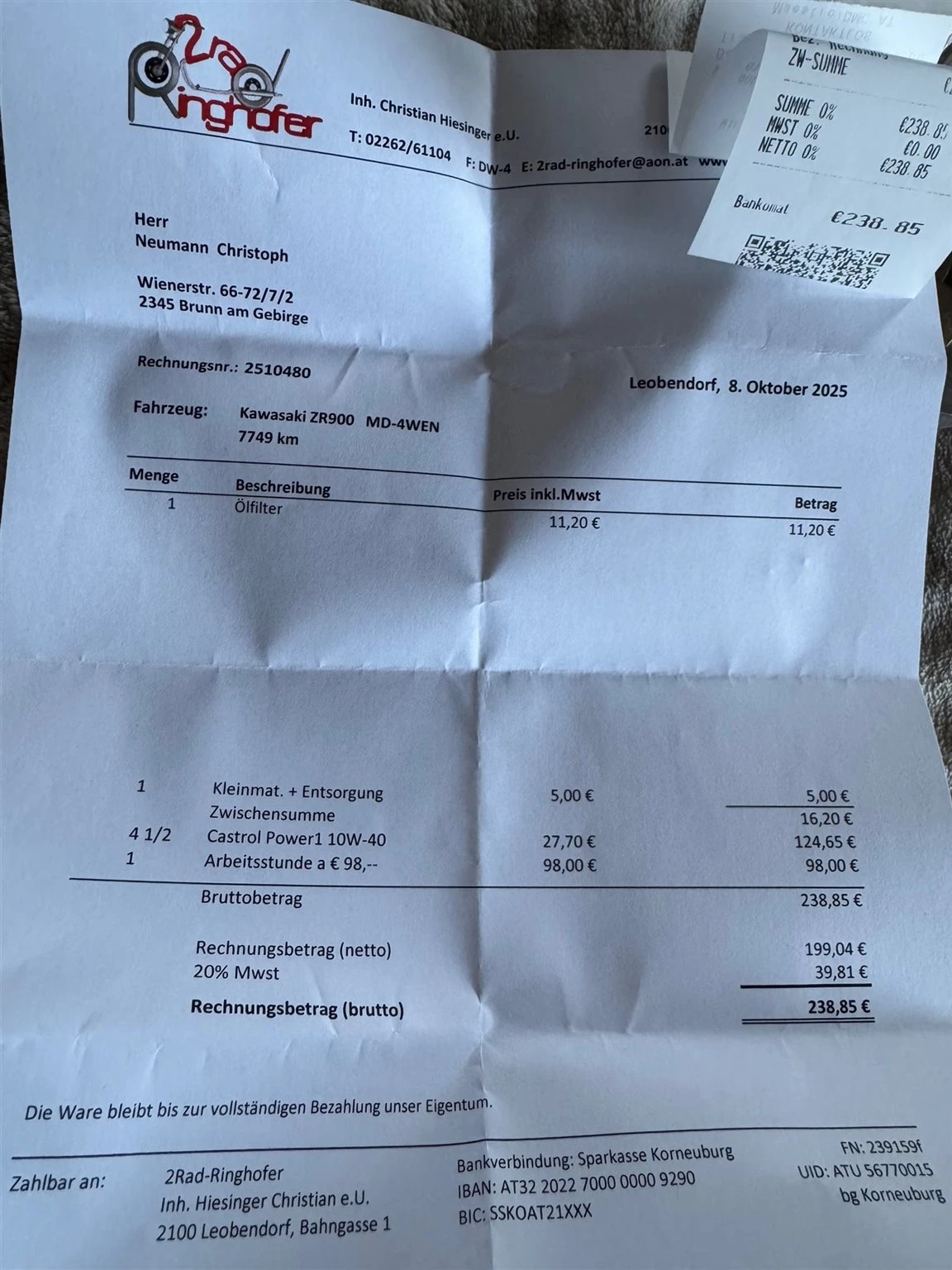 Am 8.10.2025 wurde sie serviciert und eingewintert. Vorder und Hinterreifen sind NEU PIRELLI ANGEL GT2