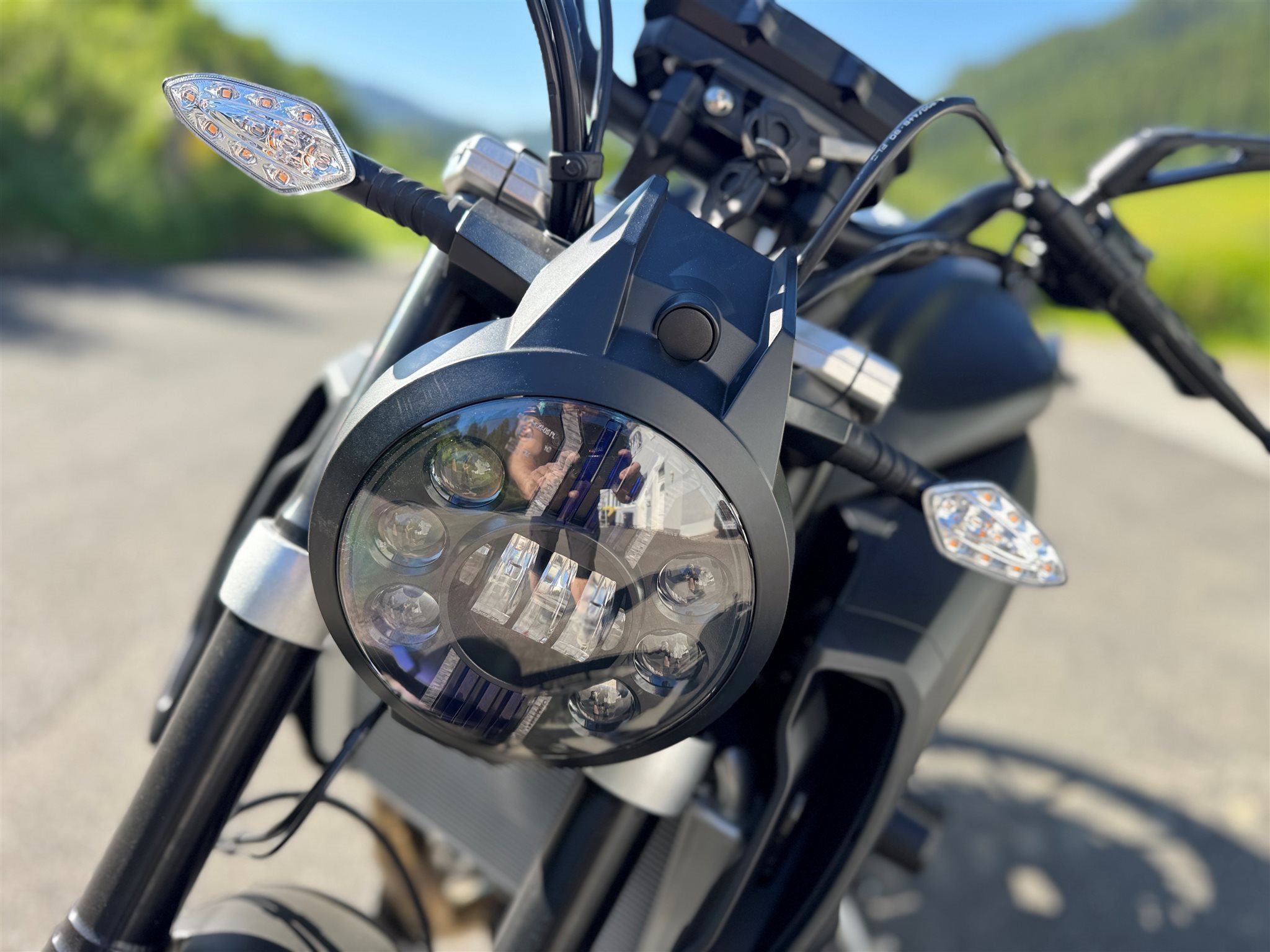 SERIENAUSSTATTUNG Bluetooth/Radio Soundsystem, LED Front- und Rücklicht, Blinkanlage, Sozius Fußrasten, links/rechts Rückspiegel, Aluminium-Blende, Aluminium Auspuff-Krümmerschutz, Übersichtliche Digitalanzeige, Warnblinkanlage, Fern- und Abblendlicht, Tagfahrlicht