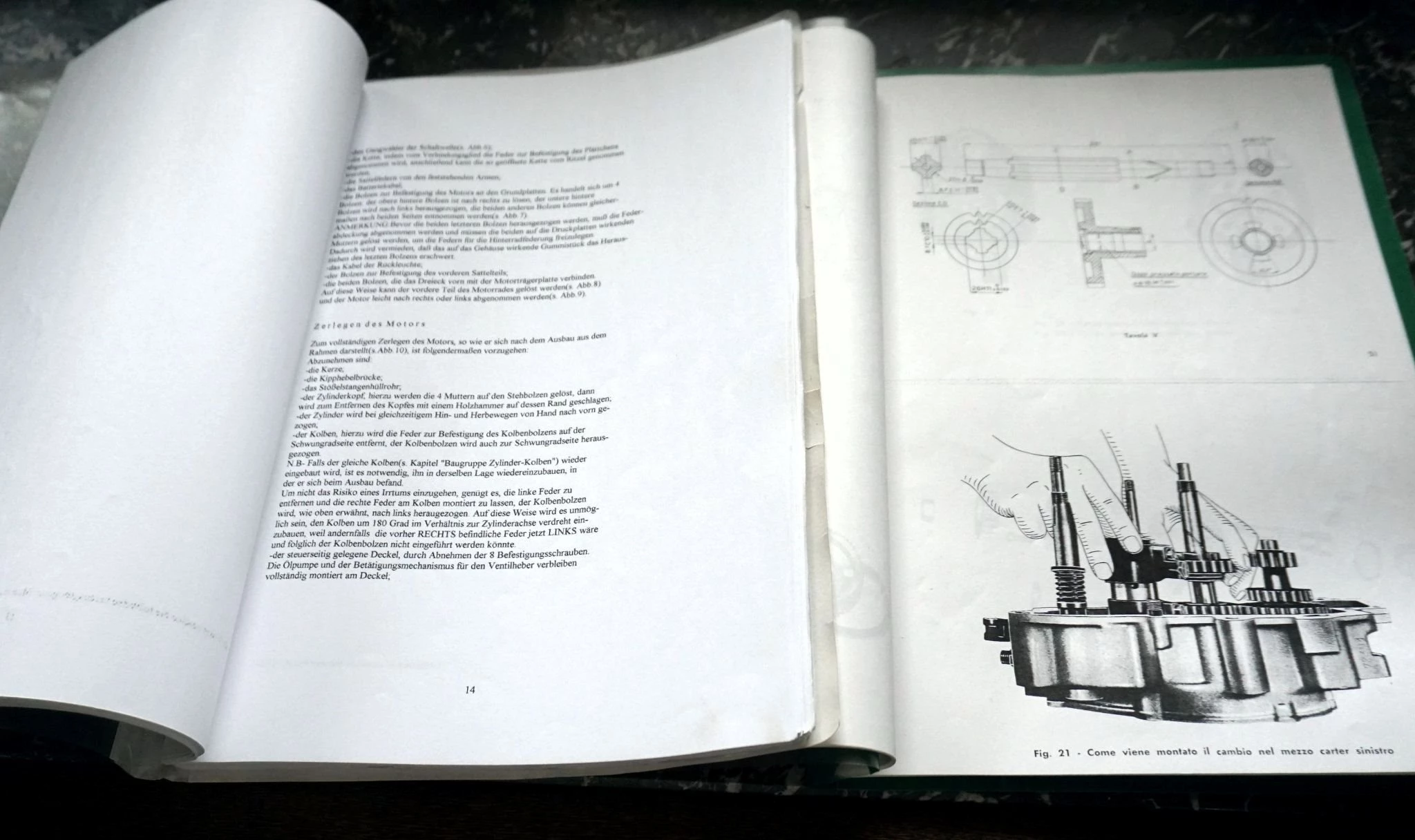 Weiters sind ein schwarzer Auspuff und einige Ersatzteile dabei. Zusätzlich auch ein originales Heft mit Explosionszeichnungen und Teilenummern, eine Mappe mit Montageskizzen, sowie eine Mappe mit einer auf deutsch übersetzten Reparaturanleitung.