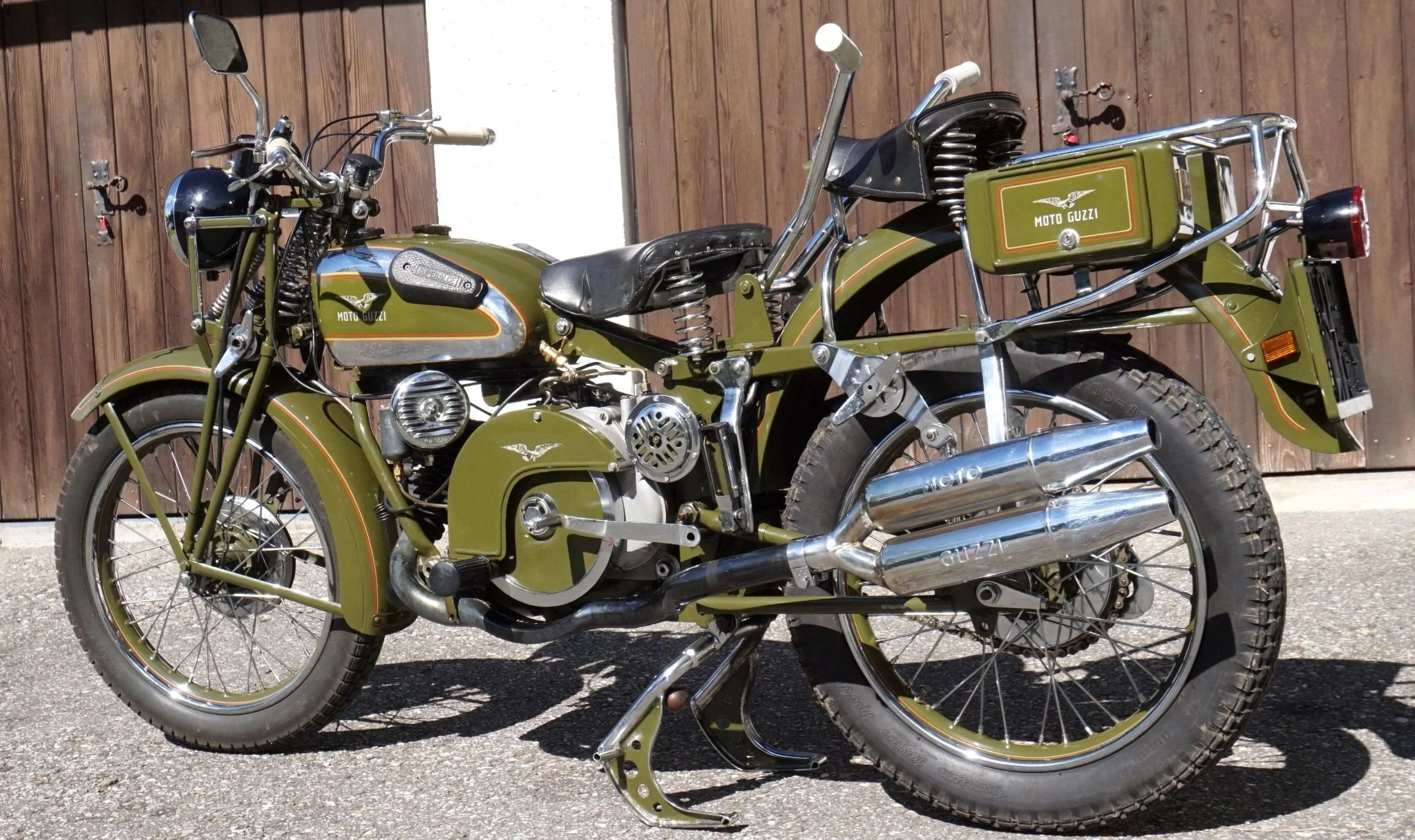 Die Superalce ist ungefähr Bj. 1950. In der Einzelgenehmigung ist 1940 eingetragen, das dürfte aber nicht stimmen. Der Kilometerstand ist abgelesen. Das Motorrad hat eine österreichische Einzelgenehmigung aus dem Jahre 1983. Das letzte mal gefahren wurde sie 2017.