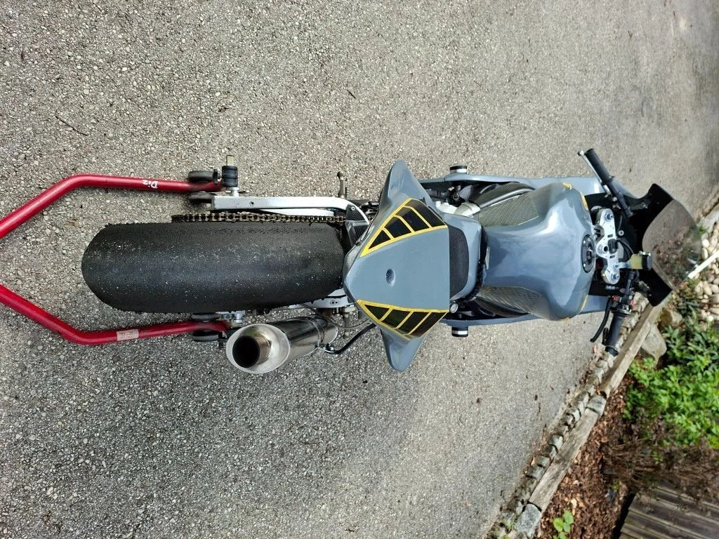 Das Motorrad ist nicht mehr auf Straßen Betrieb zurück zu bauen, ausser mit immensen Aufwand, es wurde kürzer Übersetzt gefahren, sie hatte auch schon den einen oder anderen Rutscher ins Kiesbett hinter sich, ist von der Lackierung kein Schaufensterfahrzeug, aber ein zuverlässiges, robustes schnelles Motorrad, das sicher mehr kann, als ich es nutzen konnte.