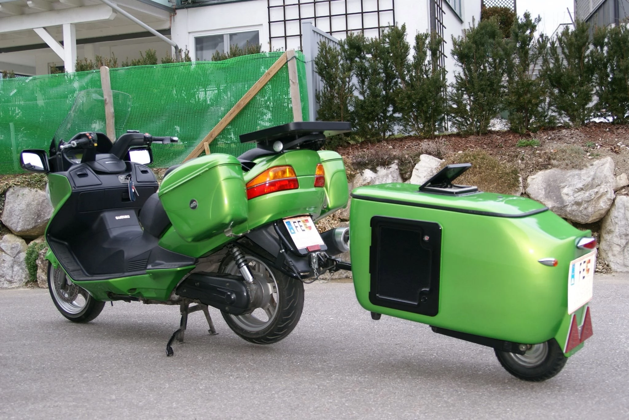 Einzigartige Kombination aus Tourentauglichen Großroller und Einradanhänger.Genaue Details gerne im persönlichen Gespräch.