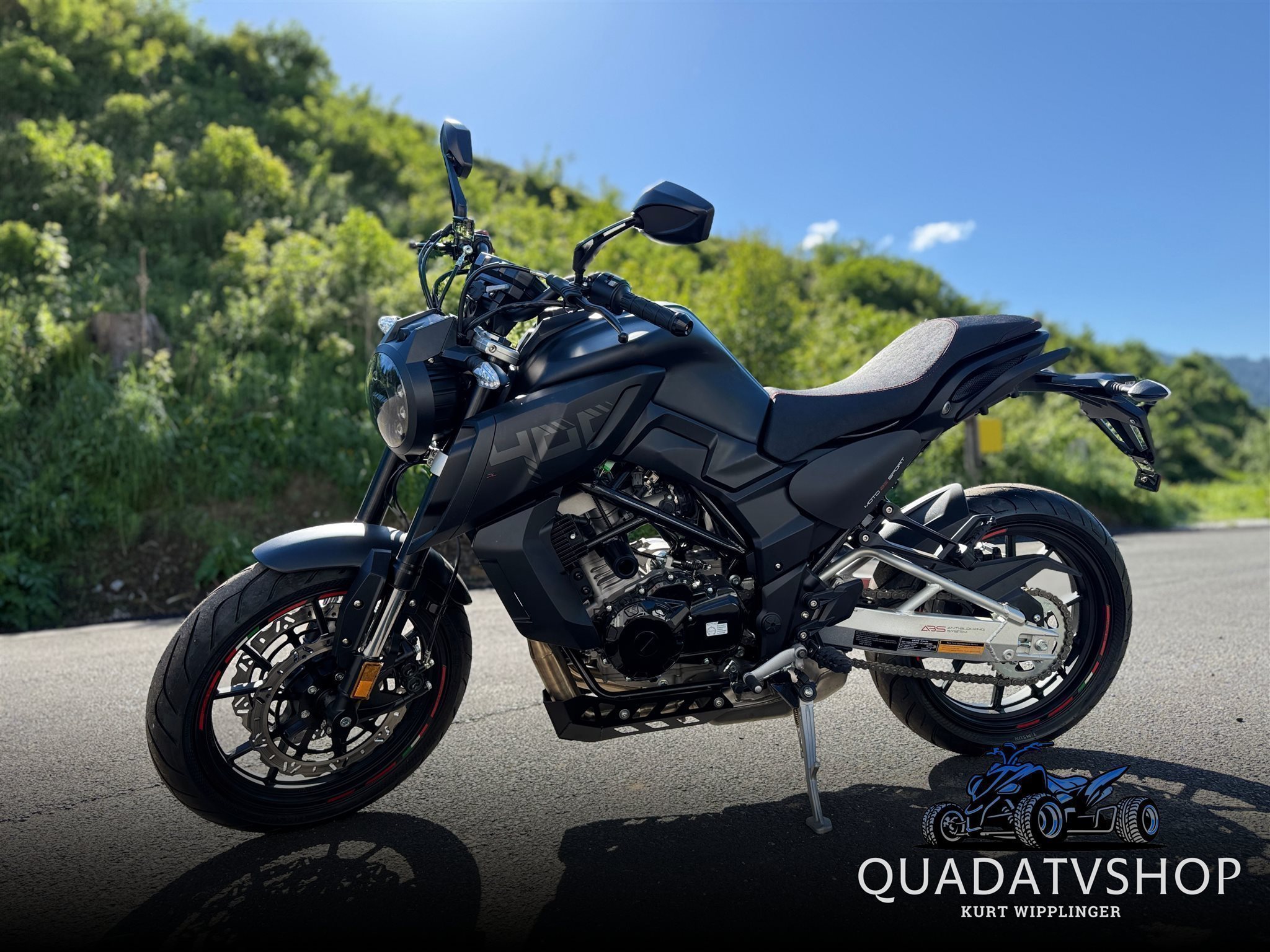 SERIENAUSSTATTUNG Bluetooth/Radio Soundsystem, LED Front- und Rücklicht, Blinkanlage, Sozius Fußrasten, links/rechts Rückspiegel, Aluminium-Blende, Aluminium Auspuff-Krümmerschutz, Übersichtliche Digitalanzeige, Warnblinkanlage, Fern- und Abblendlicht, Tagfahrlicht