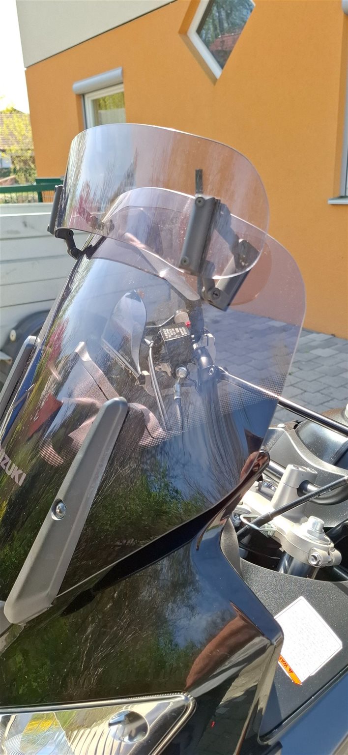 Schwarz getönntes original Suzuki Touringschild mit verstellbarem Windabweiser. (Original Windschild "klar" natürlich vorhanden und mit dabei)