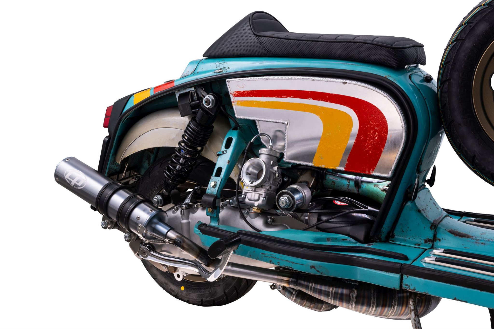 Als Grundlage diente eine Lambretta DL 125 aus dem Jahr 1969. Der Roller verfügte über türkisen Originallack mit Patina, die vom Vorbesitzer bereits aufgearbeitet worden sei. Die Designidee entstand im Team: Der Originallack sollte erhalten bleiben und mit einem Dekor im Stil der Rallye-Lackierungen der 60er- und 70er-Jahre kombiniert werden. Der Zeitplan war ambitioniert. Mitte Dezember 2025 habe der Umbau begonnen, bereits Mitte Januar 2026 sollte der Roller auf der Motor Bike Expo präsentiert werden. Für die Umsetzung blieben damit nur rund vier Wochen.
