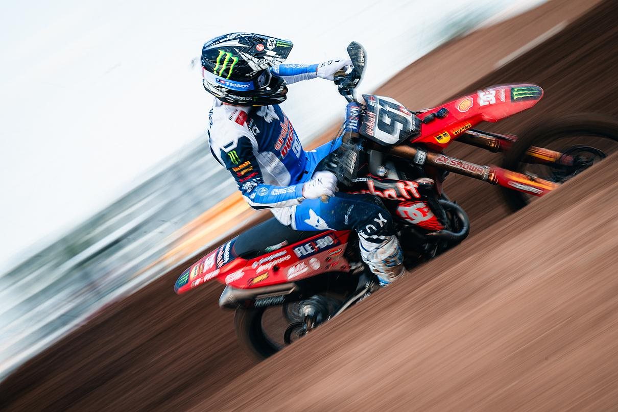 Zu Beginn des ersten Rennens am Sonntag legten Jeremy Seewer und Mattia Guadagnini einen starken Start hin und belegten die Plätze neun und elf. Sie lieferten in der hektischen Anfangsphase des Rennens auf hartem, tückischem Terrain mit wenig Grip einen harten Kampf mit den Konkurrenten. Guadagnini nutzte das anfängliche Chaos des Rennens, überholte seinen Teamkollegen und schob sich schnell auf den zehnten Platz vor, auf dem er das erste Rennen beendete, während Seewer mehrere Positionen verlor und als 14. ins Ziel kam.