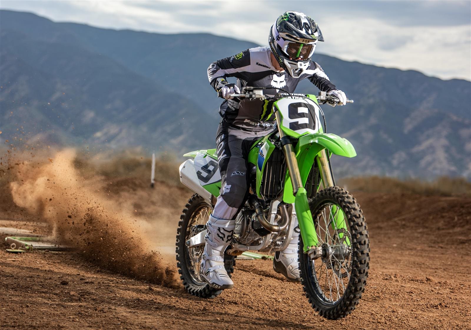 Am oberen Ende der Modellreihe steht die mächtige KX450. Die SR-Werksversion dieses Bikes hat 2025 dafür gesorgt, dass Romain Febvre mit dem Kawasaki Racing Team regelmäßig das Red Plate tragen durfte. Die KX450 überzeugt durch:
