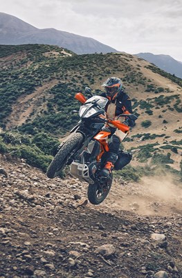 Mit 44 PS, einem 6-Gang-Getriebe und Eignung für den A2-Führerschein steuert die KTM 390 ADVENTURE auf den Horizont zu. Durch den 14,5-Liter-Tank werden 400 km Abenteuer so einfach ist wie das Drehen am Gasgriff, während die fahrerorientierte Ergonomie, ein niedriger Schwerpunkt und das wendiges Handling das Fahren auf der Straße zum Kinderspiel machen. Auch der tägliche Arbeitsweg wird damit zum Vergnügen, Cornering ABS bietet Vertrauen bei allen Bedingungen und das verstellbaren Windschild reduziert den Windwiderstand auf der Autobahn.