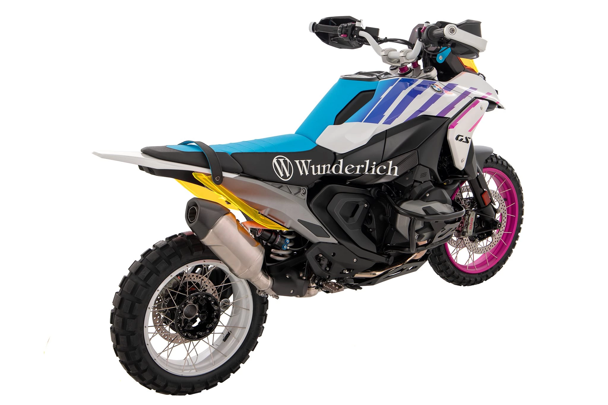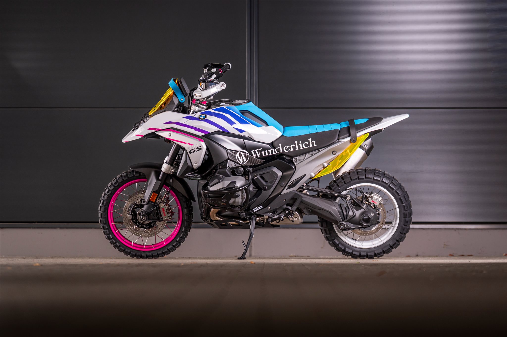Die auffallende, leuchtende Farbgebung ist ein Statement, das sofort ins Auge sticht. Die Farben folgen den aktuellen Trends und erinnern an die 90er Jahre die legendäre Ära, in der Wunderlich seine ganze Leidenschaft und Innovationskraft vollständig auf BMW konzentrierte.
