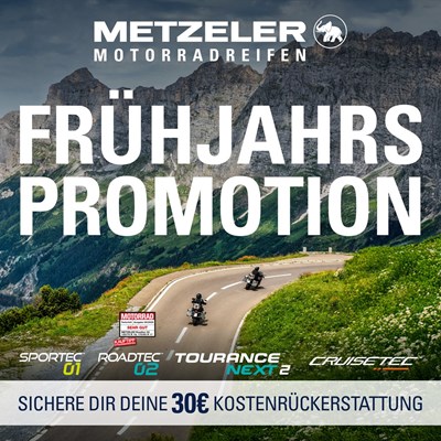 Sichere dir im Aktionszeitraum vom 02.03.2026 bis 31.05.2026 beim Kauf eines Satzes Metzeler Motorradreifen der ausgewählten Profile