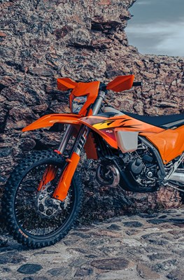Die KTM 2-Takt-Enduro-Modelle verfügen über eine elektronisch gesteuerte Drosselklappeneinspritzung – kurz TBI. Das Steuergerät berechnet zusammen mit einer Keihin-Drosselklappe (39 mm) das ideale Luft-Kraftstoff-Gemisch, indem es kontinuierlich Wassertemperatur, Lufttemperatur, Umgebungsdruck, Druck im Kurbelgehäuse, Drehzahl und Drosselklappenstellung analysiert – für die sanfteste und konstanteste Leistungsabgabe unter den härtesten Enduro-Bedingungen. Bei allen Modellen wird eine Schutzkappe für den CPC-Kraftstoffanschluss verwendet. Diese verhindert nicht nur, dass Schmutz seitlich in den Anschluss gelangt oder er versehentlich geöffnet wird, sondern schützt auch vor Ästen oder Steinen, die ihn treffen könnten. Der kleine Kraftstofffilter im Kraftstoffschlauch bleibt weiterhin an Ort und Stelle und ist leicht zugänglich. 01. Alles eine Frage der Vorbereitung Die KTM-Enduro-Reihe erhält ein frisches Farbupdate. Orange dominiert die Farbpalette, doch dunkles Violett und Rot setzen Akzente und verleihen einen einzigartigen, aber kompromisslos READY TO RACE Look. Wie immer bleiben alle Grafiken dank In-Mold-Technologie dauerhaft an Ort und Stelle, während der Sitz mit einem schwarzen High-Grip-Sitzbezug ausgestattet ist – derselbe Grip, der sich auch an den Rahmenschützern, Tankspoiler und dem Lenkerpolster wiederfindet. READY TO RACE war noch nie so einfach. Am Heck ermöglicht unsere legendäre, siegreiche PDS-Technologie mit handverstellbaren Doppel-Druckstufen eine Anpassung der Einstellungen für hohe und niedrige Geschwindigkeiten in Sekundenschnelle. Vorne lässt sich die Gabel dank handverstellbarer Klicker an der Unterseite der Gabelfaust und an der oberen Gabelkappe ganz einfach einstellen – das Ändern der Einstellungen ist so einfach wie Gasgeben. Der Luftfilterkasten ist so konstruiert, dass er maximalen Luftstrom bei minimalem Eindringen von Wasser gewährleistet. Die präzise Positionierung der Einlasskanäle verhindert Luftverformungen und sorgt für den Schutz des Filters. Ein endurospezifischer Spritzschutz unter dem Luftfilterkasten verhindert, dass Wasser oder Schmutz vom Hinterrad hochspritzt, während der Twin-Air-Luftfilter und der Luftfilterträger ein einfaches, ausfallsicheres Montagesystem für eine sichere und präzise Filterinstallation bieten. All dies stellt sicher, dass der Luftfilter ganz ohne Werkzeug leicht zugänglich ist, um eine schnelle Wartung direkt an der Strecke zu ermöglichen. Der transparente Kraftstofftank aus Polyethylen (XPE) ist ein charakteristisches Merkmal der KTM-Enduro-Reihe. Nach intensiven Renn-Tests – vom GNCC bis zu den härtesten FIM-Hard-Enduros – sind diese Tanks gebaut wie Panzer! Eine einteilige Kraftstoffpumpe mit Filter sorgt für die Kraftstoffversorgung, während die Wartung dank leicht zugänglichem Kraftstofffilter besonders einfach ist. Außerdem fixiert eine überarbeitete Tankrolle den Tank noch fester und schützt den Rahmen vor Abrieb. Die gesamte KTM-Enduro-Reihe wird mit neuen, benutzerfreundlichen Schaltern ausgestattet. Auf der rechten Seite des Lenkers befindet sich ein neuer, schlanker Start/Stopp-Schalter, während auf der linken Seite ein Mapping-Select-Schalter den Fahrern ermöglicht, zwischen Map 1 und Map 2 zu wählen. 02. Benchmark-Runde Das Kühlen wird noch einfacher,dank eines Kühlerdeckels mit Standardgewinde. Das macht das Öffnen des Kühlerdeckels für Nachfüllungen schneller und einfacher. Für zusätzliche Kühlung kann optional ein Kühlerlüfter montiert werden. Der 250-ccm-2-Takt-Motor war schon immer die beste Kombination aus unvergleichlicher Leistung und leichtem Aufbau. Dieser leichte Motor mit 24,8 kg wurde entwickelt, um mehr Drehmoment zu liefern als jeder bisherige 250-ccm-2-Takt-Motor – ohne seinen typischen 2-Takt-Charakter zu verlieren. Der 250-XC-W-Motor setzt den Maßstab in der hart umkämpften Enduro-E1-Klasse. Die KTM 2-Takt-Enduro-Modelle verfügen über eine elektronisch gesteuerte Drosselklappeneinspritzung – kurz TBI. Das Steuergerät berechnet zusammen mit einer Keihin-Drosselklappe (39 mm) das ideale Luft-Kraftstoff-Gemisch, indem es kontinuierlich Wassertemperatur, Lufttemperatur, Umgebungsdruck, Druck im Kurbelgehäuse, Drehzahl und Drosselklappenstellung analysiert – für die sanfteste und konstanteste Leistungsabgabe unter den härtesten Enduro-Bedingungen. Bei allen Modellen wird eine Schutzkappe für den CPC-Kraftstoffanschluss verwendet. Diese verhindert nicht nur, dass Schmutz seitlich in den Anschluss gelangt oder er versehentlich geöffnet wird, sondern schützt auch vor Ästen oder Steinen, die ihn treffen könnten. Der kleine Kraftstofffilter im Kraftstoffschlauch bleibt weiterhin an Ort und Stelle und ist leicht zugänglich. Die Offroad Steuergerät – kurz OCU – sitzt unter dem Sitz und ersetzt alle elektronischen Sicherungen und Relais. Sämtliche Ausgänge werden kontinuierlich abhängig von Signalen des Spannungsreglers und der ECU geschaltet. Bei Überstrom werden einzelne Ausgänge automatisch deaktiviert. Das erleichtert die Fehlererkennung, da der Status jedes Ausgangs mit einer roten oder grünen LED angezeigt wird. So lässt sich ein elektrisches Problem auf dem Trail ganz einfach durch Anheben des Sitzes erkennen – und zusätzliche Ersatzsicherungen gehören der Vergangenheit an. Entwickelt für einfache Bedienung, der Map-Select-Schalter ist serienmäßig bei den KTM EXC 6DAYS Modellen verbaut und ermöglicht die mühelose Auswahl von zwei unterschiedlichen Motorkennfeldern. Map 1 ist die Standardkennlinie mit linearer und vorhersehbarer Leistungsentfaltung, während Map 2 eine aggressivere Kennlinie für verbessertes Ansprechverhalten und eine knackige, explosive Leistungsabgabe bietet. Wie der Rest der 2-Takt Enduro Reichweite ist auch die KTM 250 XC-W mit einem bewährten und zuverlässigen Elektrostartsystem ausgestattet. Angetrieben von einer ultraleichten 2-Ah-Lithium-Ionen-Starterbatterie sorgt e