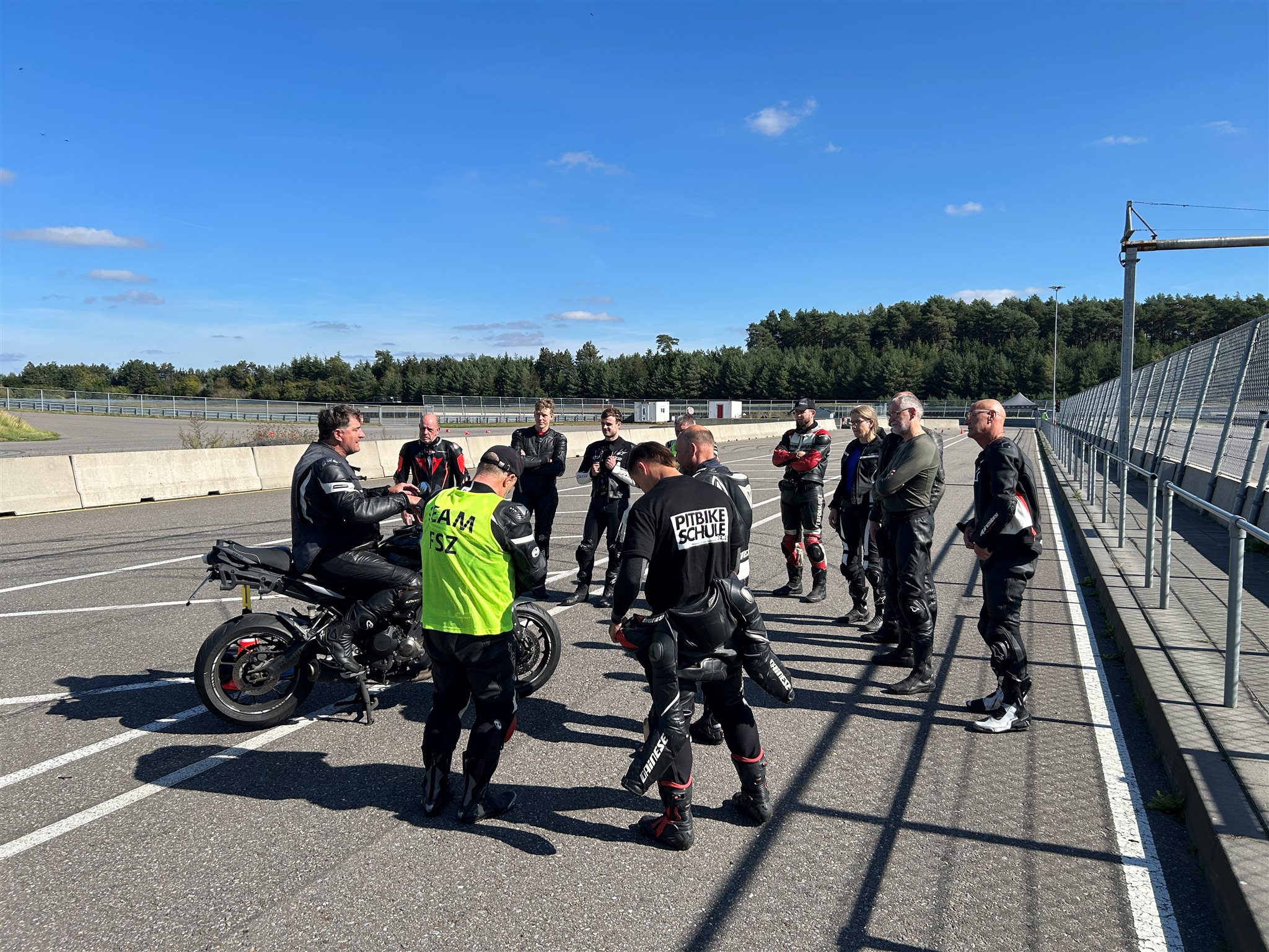 Dazu nutzen wir am Morgen fast alle Möglichkeiten vor Ort: die Strecke selbst und freie Asphaltflächen, alles aufgeteilt in Sektionen.
