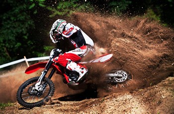 Für die notwendige Verzögerung sorgt auf der RR 400 4T vorne eine Zweikolben-Zange und hinten eine Scheibe Einkolben-Zange. Die RR 400 Factory vertraut vorne auf eine. Hinten ist eine Scheibe verbaut.