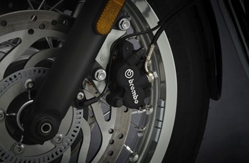 Für die notwendige Verzögerung sorgt auf der Harley-Davidson vorne eine Einzelscheibe Vierkolben-Zange und hinten eine Scheibe Zweikolben-Zange. Die Triumph vertraut vorne auf eine Doppelscheibe mit 310 Millimeter Durchmesser und Zweikolben-Zange von Brembo. Hinten ist eine Scheibe mit 255 mm Durchmesser und Zweikolben-Zange von Nissin verbaut.
