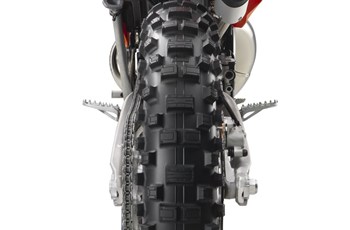 Bei der Bereifung setzt 300 EXC auf Schlappen mit den Maßen 80 / 100 - 21 vorne und 140 / 80 - 18 hinten. Für Bodenkontakt sorgen auf der EC 300 E Reifen in den Größen 90/90-21 vorne und 140/80-18 hinten.