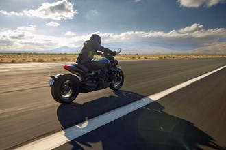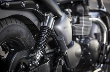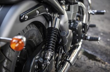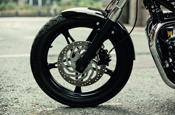 Für die notwendige Verzögerung sorgt auf der Triumph vorne eine Zweikolben-Zange und hinten eine Scheibe Zweikolben-Zange von Nissin. Die Harley-Davidson vertraut vorne auf eine Einzelscheibe mit 300 Millimeter Durchmesser und Zweikolben-Zange. Hinten ist eine Scheibe mit 260 mm Durchmesser und Zweikolben-Zange verbaut.