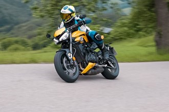 Nach wie vor ist das RS-Topmodell unter den Street Triples tatsächlich das erstrebenswerteste. Neben dem gewohnt spielerischen Handling, den superdirekten Brembo-Bremsen und dem quirligen Charakter des Dreizylinder-Motors kommt nun noch eine bauchigere Drehzahlmitte, aufgerüstete Elektronik sowie eine Brembo M50-Bremse und die nochmals verschärfte Optik dazu. Dank der sehr sportlichen Pirelli Supercorsa SP V3-Bereifung sind Trackdays tatsächlich ein ernstes Thema, der nun serienmäßige Schaltassistent mit Blipper-Funktion erhöht den Anreiz, auf das neue Modell umzusteigen enorm. Ein herrliches Spaßgerät sowohl für Landstraße als auch Rennstrecke!