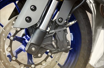 Für die notwendige Verzögerung sorgt auf der R125 vorne eine Einzelscheibe und hinten eine Scheibe. Die DT 125 X vertraut vorne auf eine. Hinten ist eine Bremse verbaut.