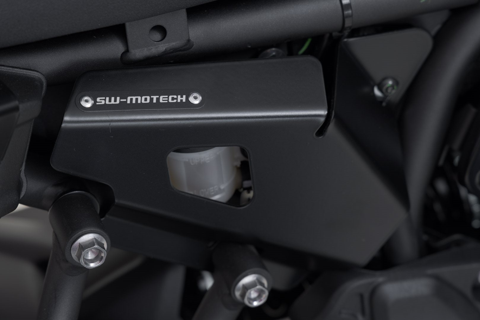 Der kompakte Bremsflüssigkeitsbehälter-Schutz schützt den original Bremsflüssigkeitsbehälter vor Steinschlag und verhindert gleichzeitig das ungewollte Entfernen des Deckels. Der Protektor lässt sich mit wenigen Handgriffen am Motorrad anbringen.