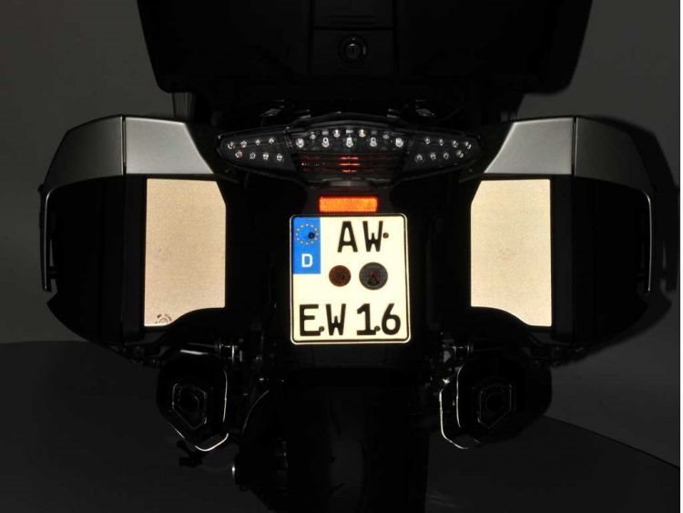 Das verhältnismässig kleine Rücklicht spiegelt nicht im Ansatz die tatsächliche Breite einer BMW mit Koffern wieder. Dieser maßgeschneiderte 3M-Foliensatz reflektiert auftreffendes Licht und erhöht so die Signalwirkung erheblich. Sofort ist die tatsächliche Breite ersichtlich und das Fahrzeug wird schon von weitem wahr genommen, wodurch sich die passive Sicherheit um ein Vielfaches erhöht. Leichtes Aufbringen. Maßanfertigung für die Original Koffer der K 1600.Beschreibung zu MasterReflex Reflektor-Folie anzeigen