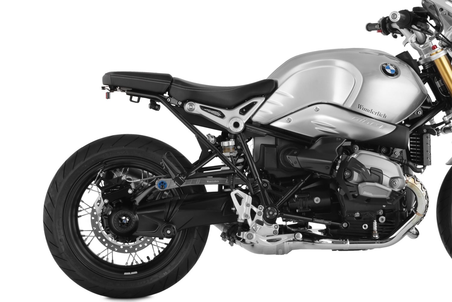 Funktion und Produktmerkmale Technische Daten Ihre Wunderlich Vorteile Wer das Heck seiner BMW aufräumen und die sportlich-puristische Retro-Linie konsequent fortführen möchte, für den ist unser formschöner, am Kardan montierter Kennzeichenträger genau das Richtige. Der filigrane Träger aus hochwertigem Aluminium unterstreicht den Retro-Sport Look und rückt den Blick frei auf den hinteren Reifen ein klares Statement in Sachen Stil.Beschreibung zu Wunderlich Heckumbau LOW - schwarz-titan - mit Rücklicht-Umbau STRIPE anzeigen