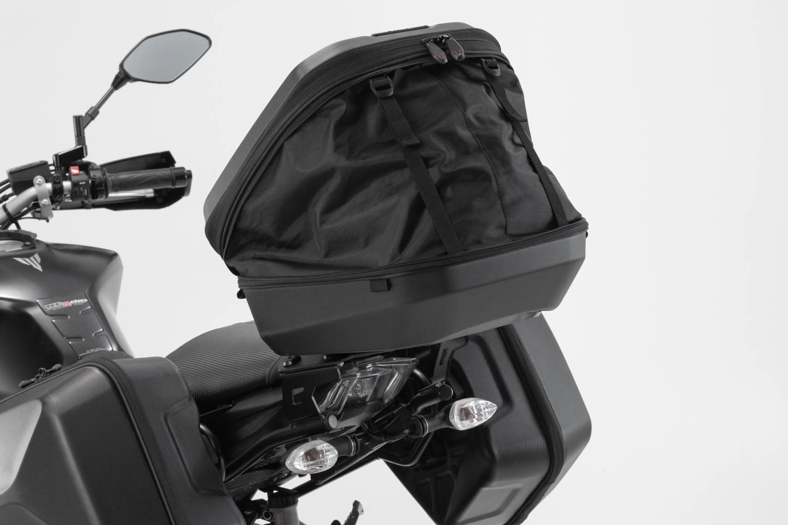 Für die große Reise kannst du das URBAN ABS Topcase mit den AERO ABS Seitenkoffern kombinieren. Beide Koffer passen mit ihrem eleganten und aerodynamischen Design perfekt zusammen.