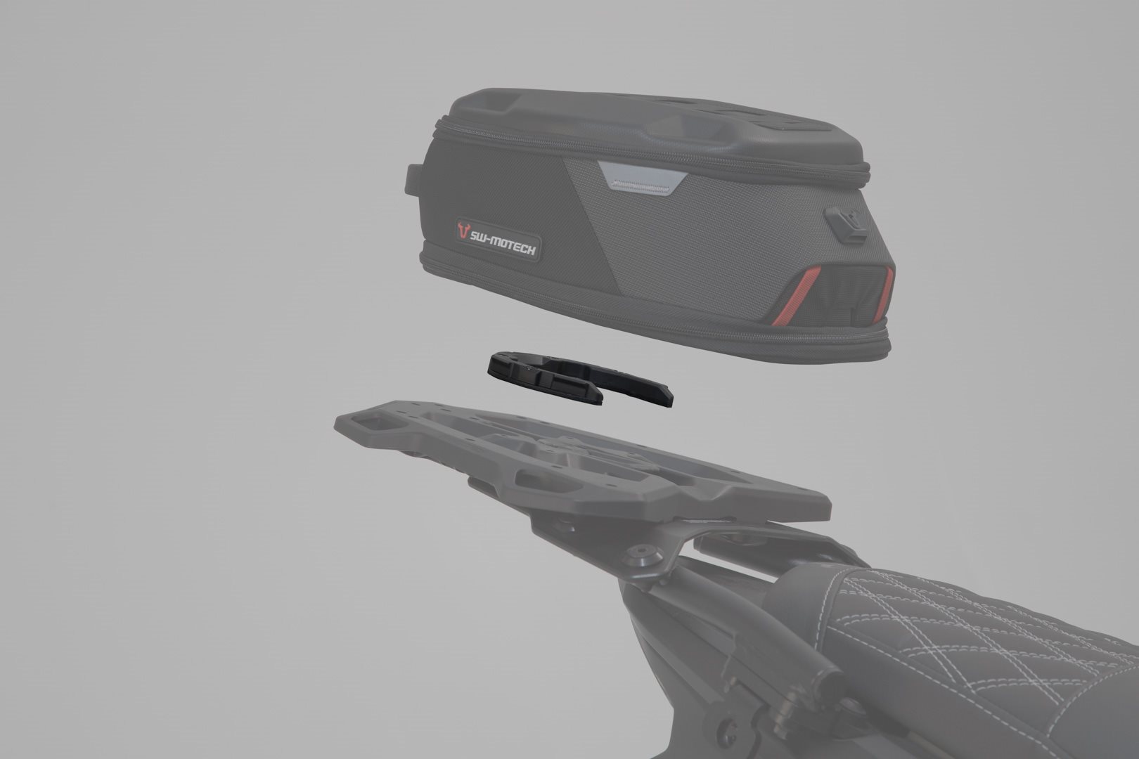 QUICK-LOCK Funktion ermöglicht einfaches Aufklicken von folgenden Tankrucksack-Modellen: PRO Micro, PRO Daypack, PRO Sport und ggf. PRO Engage