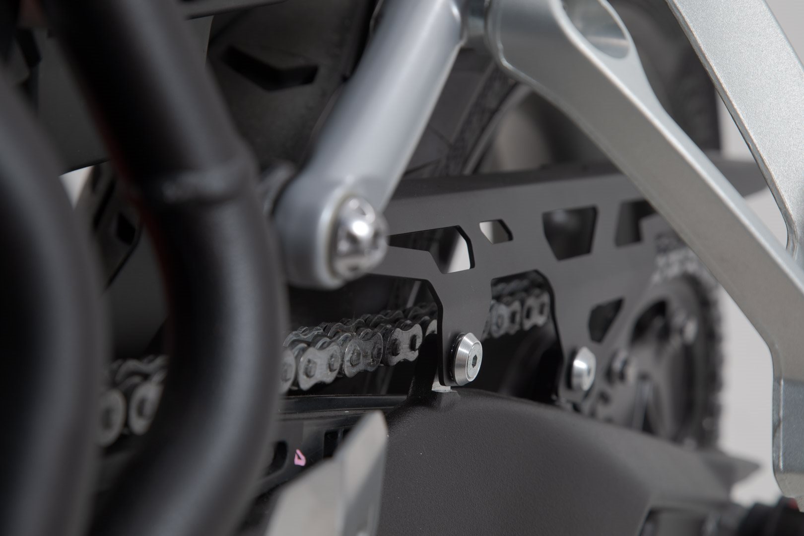 Der SW-MOTECH Kettenschutz ist eine hochwertige Alternative zum original Kettenschutz aus Kunststoff. Die gummigelagerte Befestigung lässt sich einfach montieren.