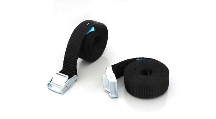 Zurrgurtsatz mit Schnell-Spannschlössern (2-tlg.): Inhalt: 2 robuste Zurrgurte mit praktischen Schnell-Spannschlössern. * Länge: jeweils 2,5 m * Breite: 25 mm * Zugfestigkeit: 70 kg * Reißpunkt: 210 kg (Europa-Norm 12195) Ein Zurrgurt wird zur Ermittlung des Reißpunktes in einem Test Schritt für Schritt mit mehr und mehr Gewicht belastet. An dem Punkt, an dem der Zurrgurt letztendlich reißt, wird das entsprechende Gewicht gespeichert.