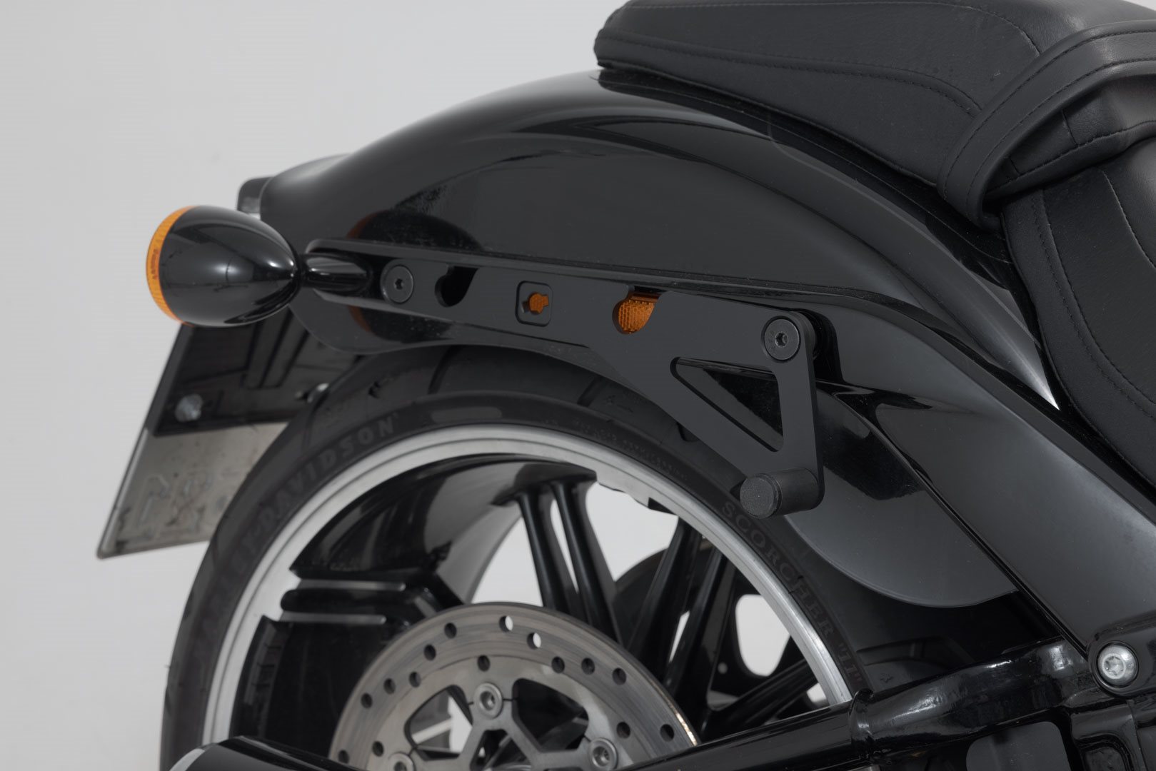 Der modellspezifische Taschenträger wird an original Anbaupunkten des Fenderstruts einfach und schnell montiert. Ü