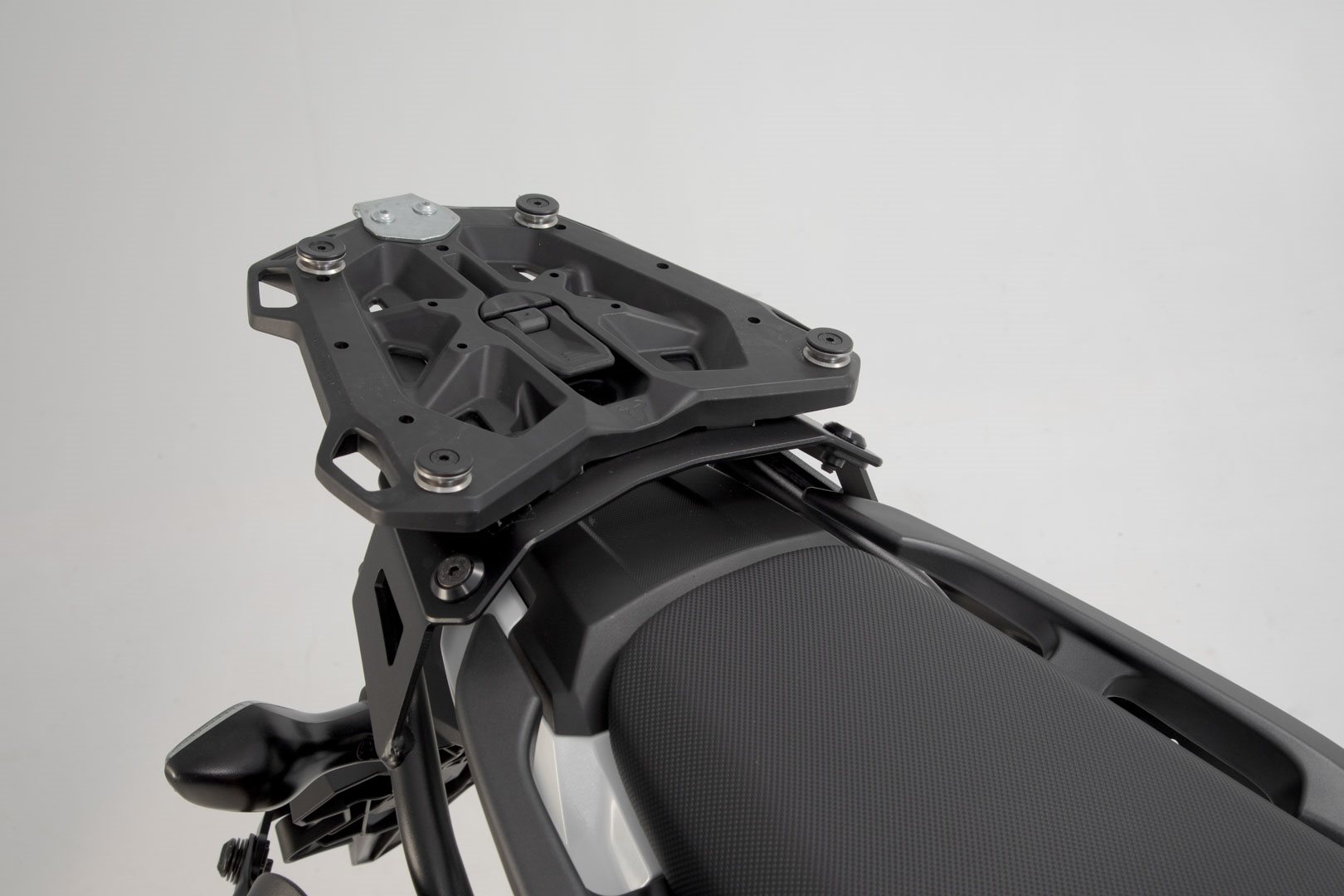 Der modellspezifische Gepäckträger und die Adapterplatte sichern den Halt des Topcases: es wird einfach aufgeschoben und mit Hilfe des abschließbaren Spannverschlusses arretiert.