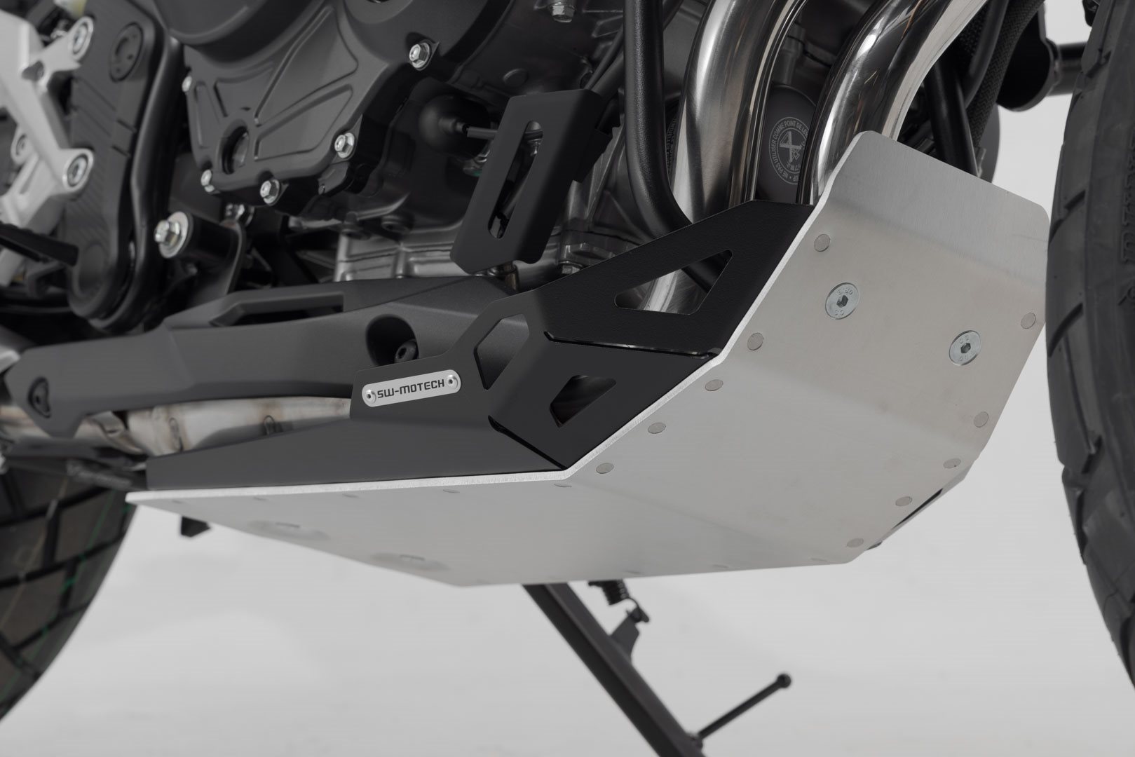 Zusätzlicher Schutz des Motors vor Steinschlag und bei Bodenkontakt: Der aus hochwertiger Aluminium-Legierung gefertigte Motorschutz zeigt abseits der Straße sein ganzes Können, gibt aber auch Straßenmotorrädern ein Mehr an Sicherheit und einen individuellen Look. Hochmoderne Fertigungsverfahren geben den modellspezifisch gefertigten Schutzteilen eine sichere Passform. Die Befestigung an Rahmen-Montagepunkten verleiht zusätzliche Stabilität und erlaubt eine einfache Montage.
