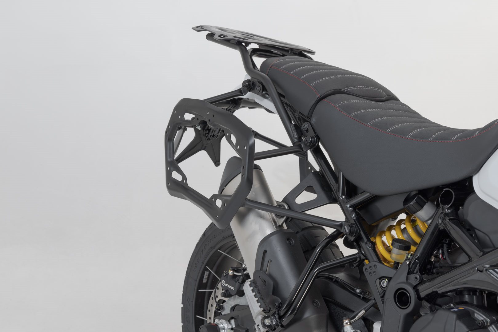 Mit dieser Kombination aus PRO Seitenträgern und zwei SysBag WP L Taschen macht SW-MOTECH die Ducati DesertX (22-) startklar für das nächste Motorrad-Abenteuer. Die belastbaren und abnehmbaren Träger geben den wasserdichten Offroad-Taschen optimalen Halt in jedem Terrain.