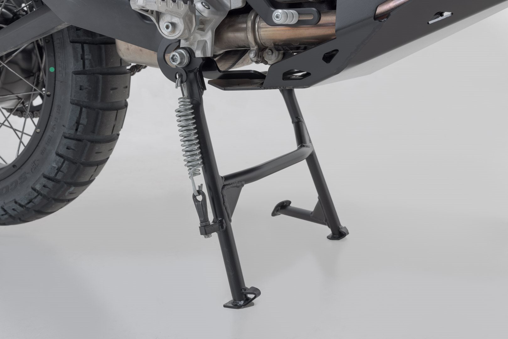 Die unverwüstliche und dennoch leichte Stahlrohr-Konstruktion bietet beste Schräglagen- und Bodenfreiheit, einfaches Aufbocken und festen Stand ob bei der Wartung oder unterwegs. Die Anschaffung eines zusätzlichen Montageständers ist meist nicht mehr erforderlich. Ideal für die Wintermonate: bei längeren Standzeiten entlastet der Hauptständer die Reifen.