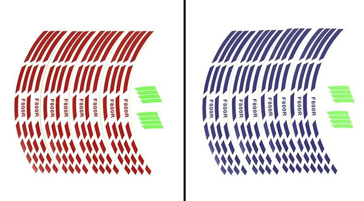 Felgenrand-Aufkleber mit Motorradtypenbezeichnung F800R. - vorgekrümmte 7 mm breite Segmente - für 17 Zoll Felge vorne und 17 Zoll Felge hinten - hochwertige Fahrzeugfolie - verschiedene Farben lieferbar (Sonderfarben auf Anfrage) Lieferumfang: 16 Segmente (4 Segmente pro Felgenseite) + Anleitung Nicht passend für Speichenfelgen mit außenliegenden Speichen!