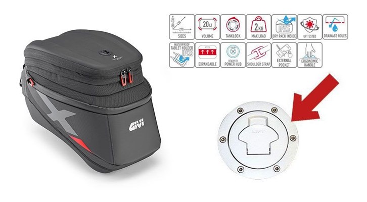 Tanklock-Tanktasche XL04, erweiterbar von 15 auf 20 Liter, X-Line Materialien: - Hochfestes 1200D W/R Polyester und Einsätze in TPU - Thermogeformte Abdeckung und Kofferunterteil - Außenmaterial mit hoher UV-Beständigkeit Ausstattung: - Kartenfach mit schnellem Ein- und Aushaken und Magnet (Fidlock), wasserabweisend, Wasserdichtheitsgrad IPX5 (beständig gegen starken Regen und extreme Bedingungen) - Herausnehmbarer wasserabweisender Innensack, Wasserdichtheitsgrad IPX5 (beständig gegen starken Regen und extreme Bedingungen) - Wasser-/Feuchtigkeitsabflusslöcher im Boden des Beutels - Außentasche unabhängig vom Hauptfach - Kabelausgangsanschluss kompatibel mit dem Ladesystem des Givi Power Hub - Kompatible Puller zum Anbringen eines Sicherheitsvorhängeschlosses (nicht im Lieferumfang enthalten) - Sicherheitsriemen zum Befestigen am Lenker - Schultergurt zum Tragen auf der Schulter - Handgriff für den Transport - Reflektierende Einsätze für bessere Sichtbarkeit Der Lenker sollte auf 10° hochgedreht werden, damit die Lenkerarmaturen bei vollem Lenkeinschlag nicht gegen den Tankrucksack gedrückt werden. Zur Befestigung wird die Tankbefestigung BF11 benötigt (passt auch bei Keyless Ride). Nur passend für Tankdeckel mit 6 Schrauben aussen! Um zu verhindern, dass der Tankrucksack auf der Lackierung Ihres Tanks scheuert, empfehlen wir für die BMW R1200GS (2017-2018) unsere Tankpad-Lackschutzfolie (Artikel 028808).