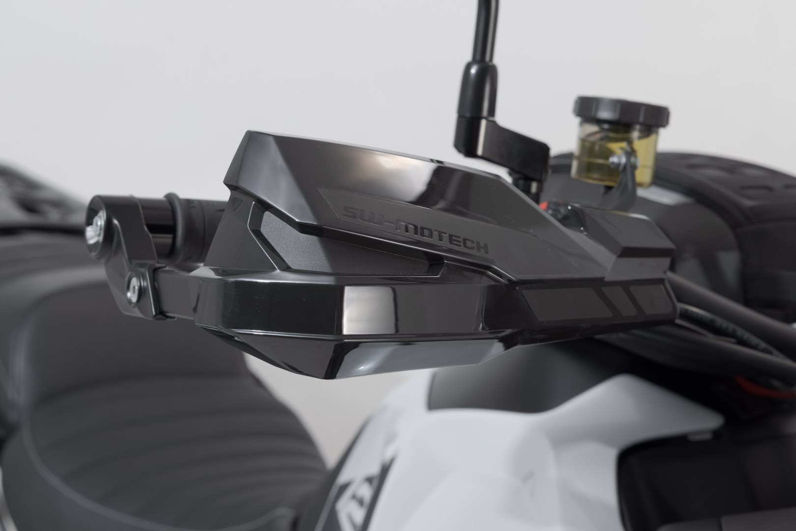 Erhöhte Sichtbarkeit im Verkehr bieten separat erhältliche , die einfach in die Aussparungen der Handprotektoren eingesetzt werden.
