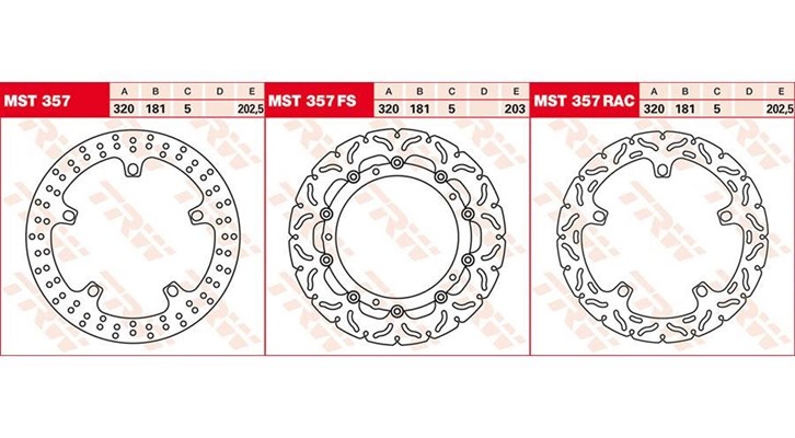 Nach langjähriger Entwicklungsarbeit und harten Tests auf internationalen Rennstrecken kommt nun endlich ein neues Hightech-Produkt aus dem Hause Lucas mit ABE auf den Markt. Mit diesen Bremsscheiben wird die Umbau-Szene direkt angesprochen, hier wird Innovation umgehend honoriert. Doch erst recht profitiert man im Rennsport von der ultra-hitzeresistenten Legierung und das innovative Design trägt zu einem direkten und gut dosierbaren Druckpunkt bei. Lieferumfang: 1 Bremsscheibe BMW R1250RS: MST 357 FS Achtung: Bitte kontrollieren Sie vor der Bestellung die Dicke Ihrer originalen Bremsscheibe. Ist diese Bremsscheibe 5mm dick, passt unsere Bremsscheibe MST 357 FS. Ist die Originalscheibe allerdings 4,5 mm dick, passt nur unsere Bremsscheibe MST 356 / MST 356RAC. Achtung: Für MST 357 und MST 357RAC bitte das Fitting Kit MST16FK mitbestellen, sofern das von der Originalscheibe nicht zu demontieren / verwenden ist. Für MST 357 FS bitte das Fitting Kit MST12FK mitbestellen, sofern das von der Originalscheibe nicht zu demontieren / verwenden ist.