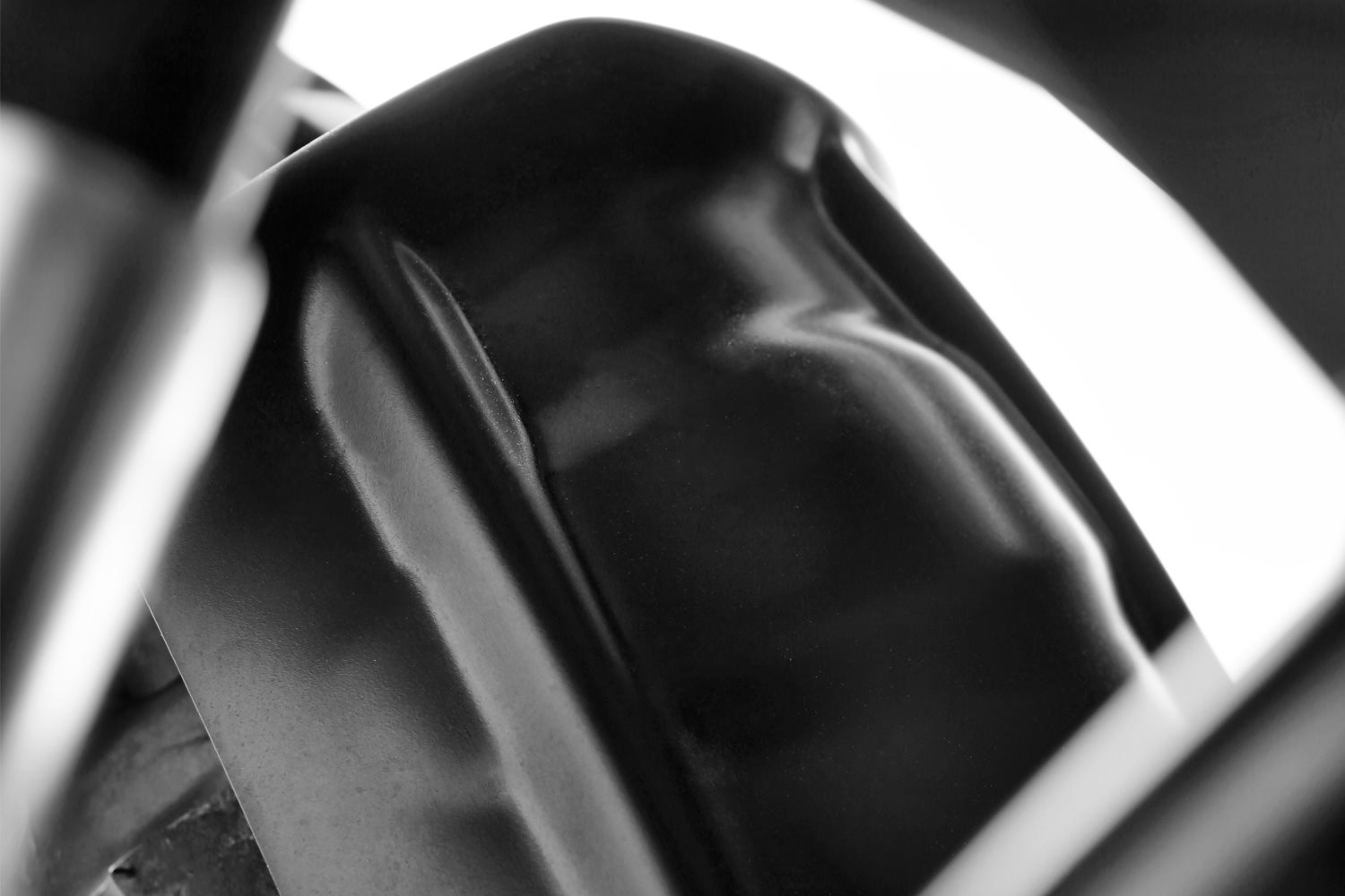 Die filigrane Halterung an der Schwinge geht in den hochwertigen Schutz aus faserverstärktem ABS-Kunststoff über. Leichte und sichere Befestigung.