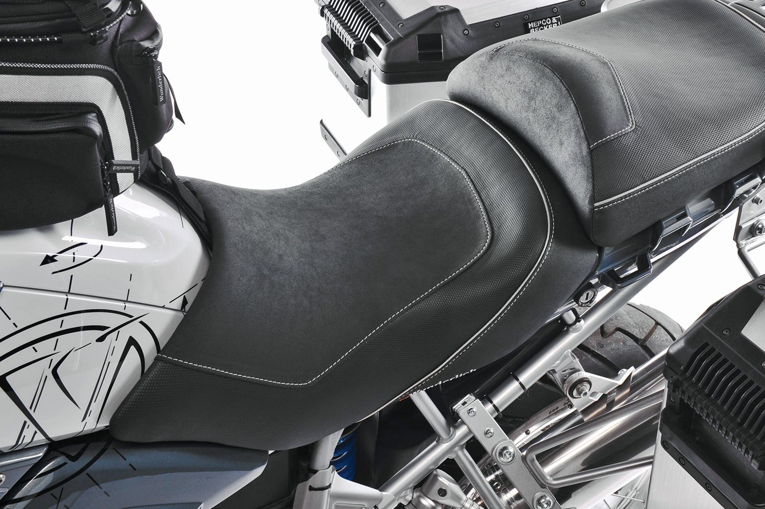 Erleben Sie die neue Generation einer Motorradsitzbank passend zur BMW R 1200 GS und BMW R 1200 GS Adventure: Durchdacht konstruiert mit vielen innovativen Lösungen. Die Original BMW Motorradsitzbank verfügt über eine ungünstige, das Steißbein belastende Form. Die Neigung der BMW Sitzbankoberfläche führt bei vielen zu einer falschen Beckenhaltung. Dem setzen wir einen aufwändig verarbeiteten Schaumstoffkern mit einer völlig neuen Kontur und einem einmaligen Materialaufbau entgegen. Bei unseren ThermoPro Fahrer- und Beifahrersitzbänken liegt die Temperatur der Sitzfläche im Hochsommer in praller Sonne um bis zu 25°C niedriger im Vergleich mit herkömmlichem Bezugsmaterial. Passend dazu haben wir eine Beifahrersitzbank im Programm.