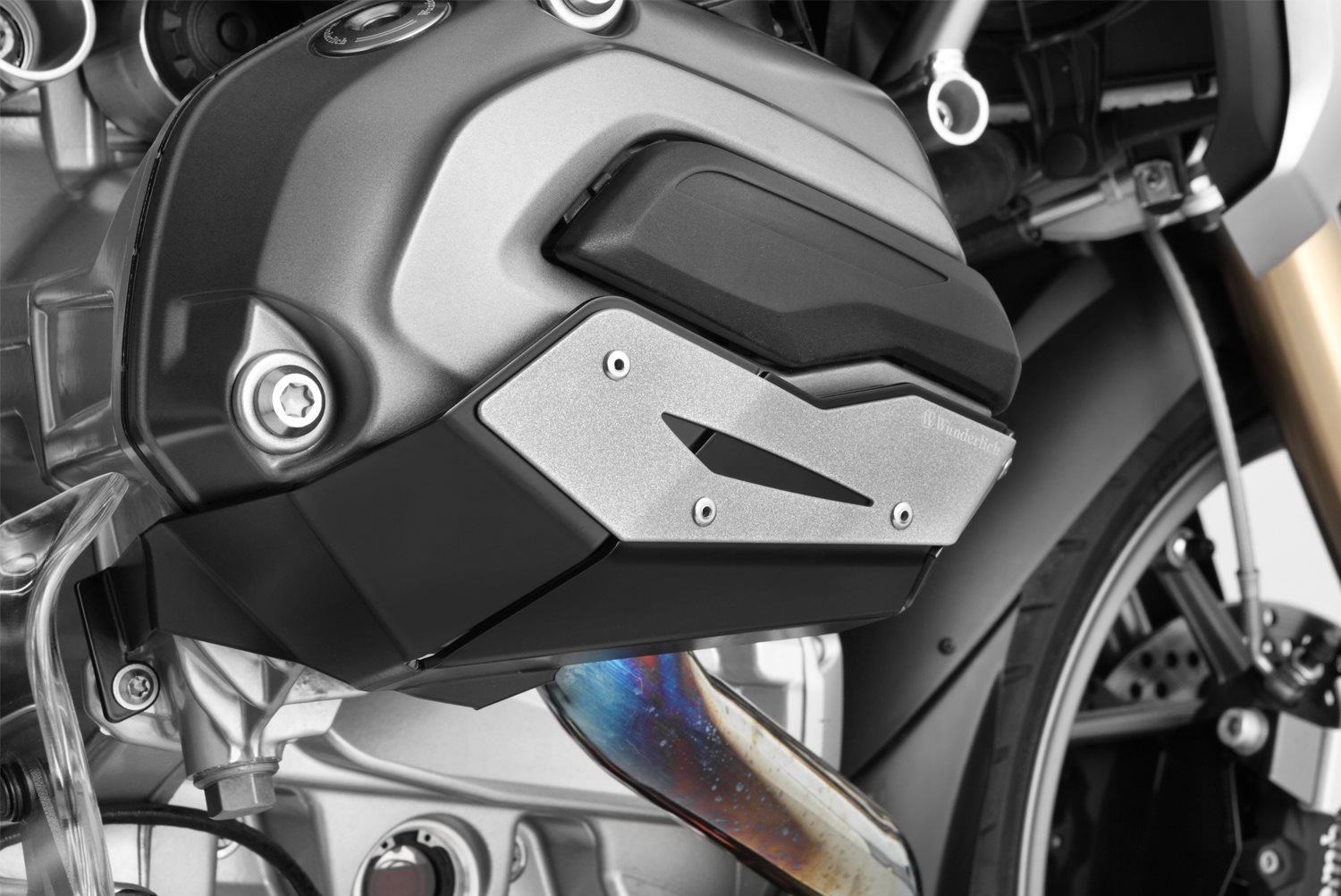 Hinweis: Die Protektoren lassen sich problemlos mit den original BMW Sturzbügeln montieren (gilt nur für R1200 GS LC -2016), bei Montage mit Wunderlich Sturzbügel wird der Anbaussatz 35611-000 benötigt.